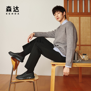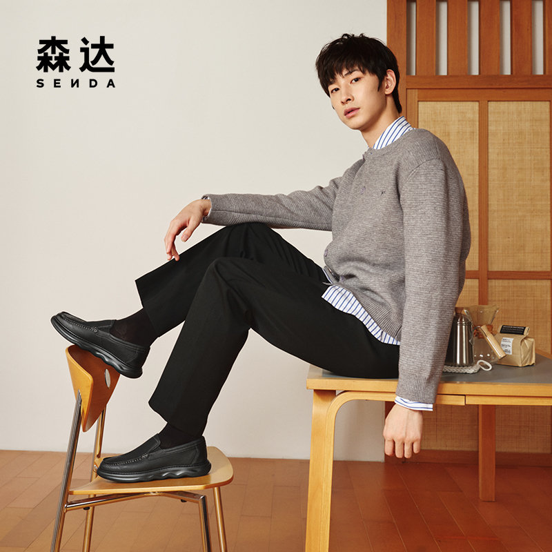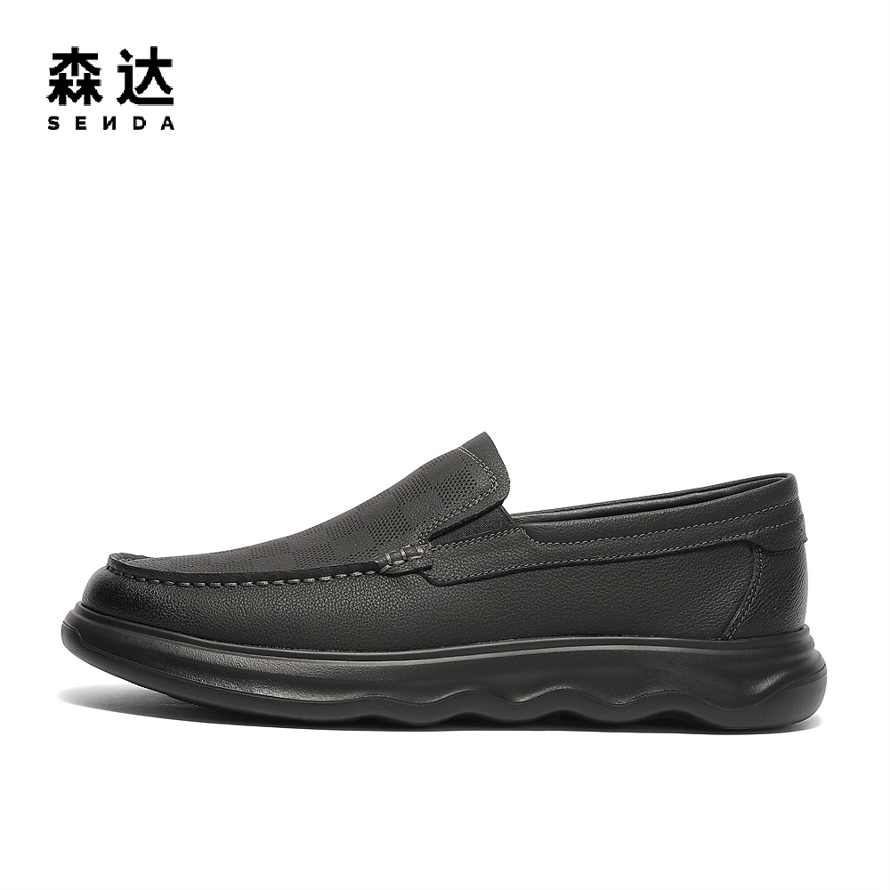 休闲皮鞋 新款 男士 软底一脚蹬真皮鞋 红蜻蜓男鞋 子男中年爸爸鞋 秋季