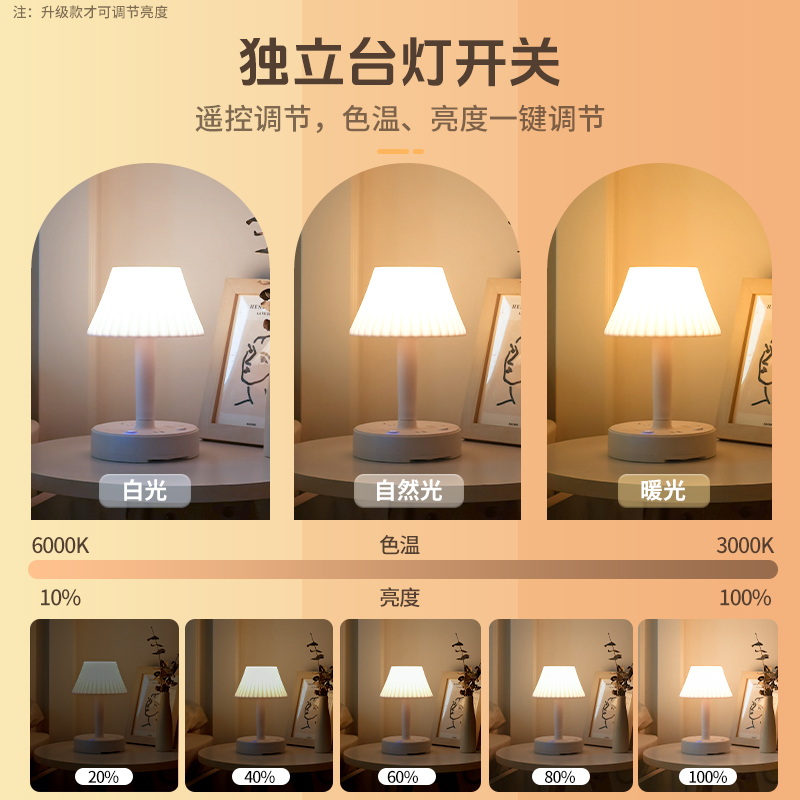 瑞界2024新款 多功能台灯卧室床头灯排插小夜灯睡眠灯带插座USB