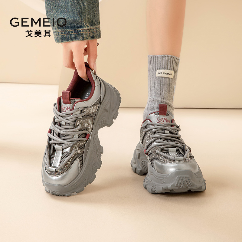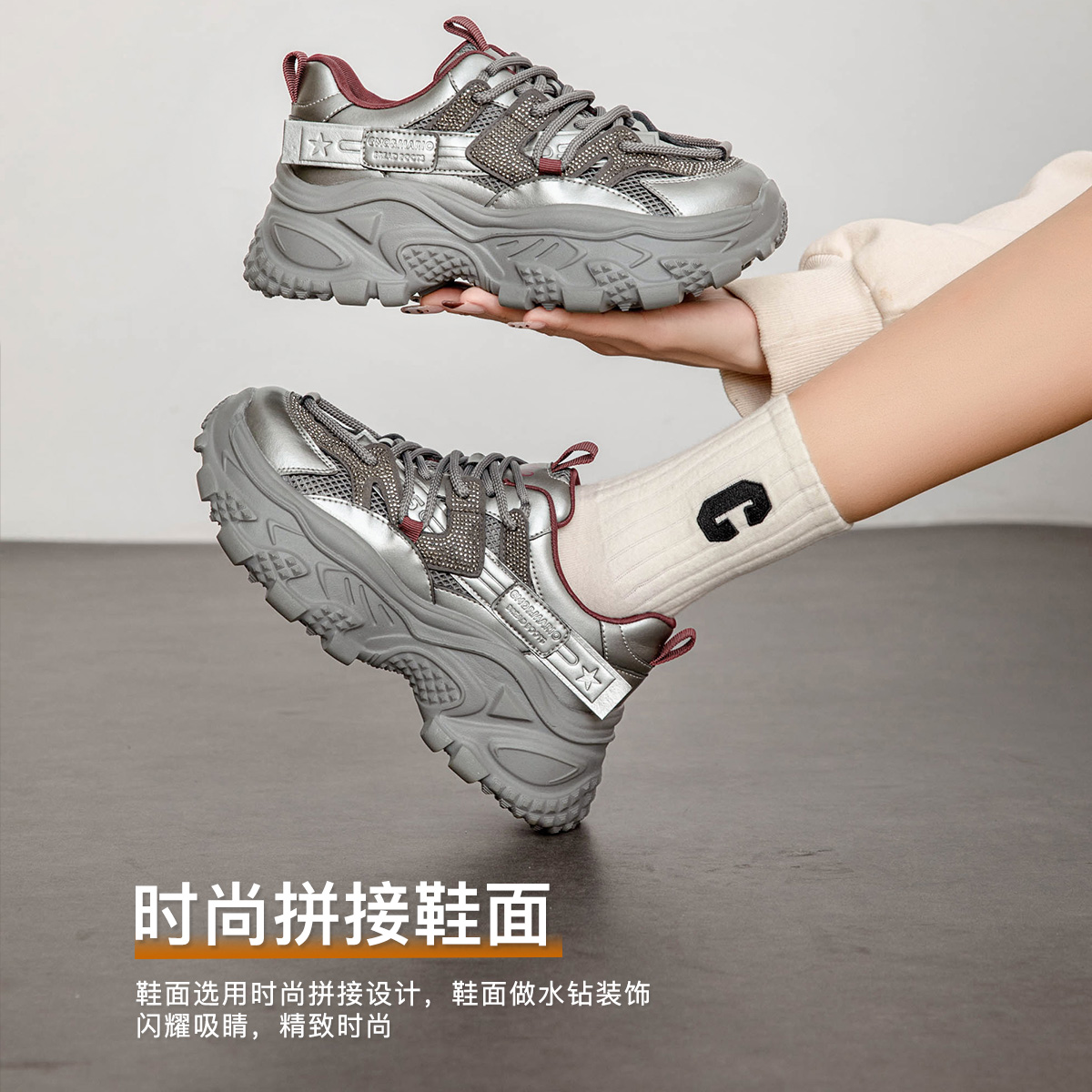 2025新款 女款 秋季 增高百搭爆款 环球露丝同款 运动鞋 厚底银色老爹鞋