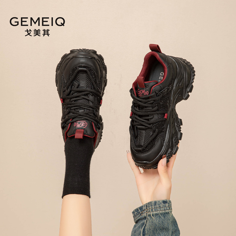 休闲鞋 骆驼女鞋 女增高加绒运动鞋 厚底老爹鞋 2025年秋季