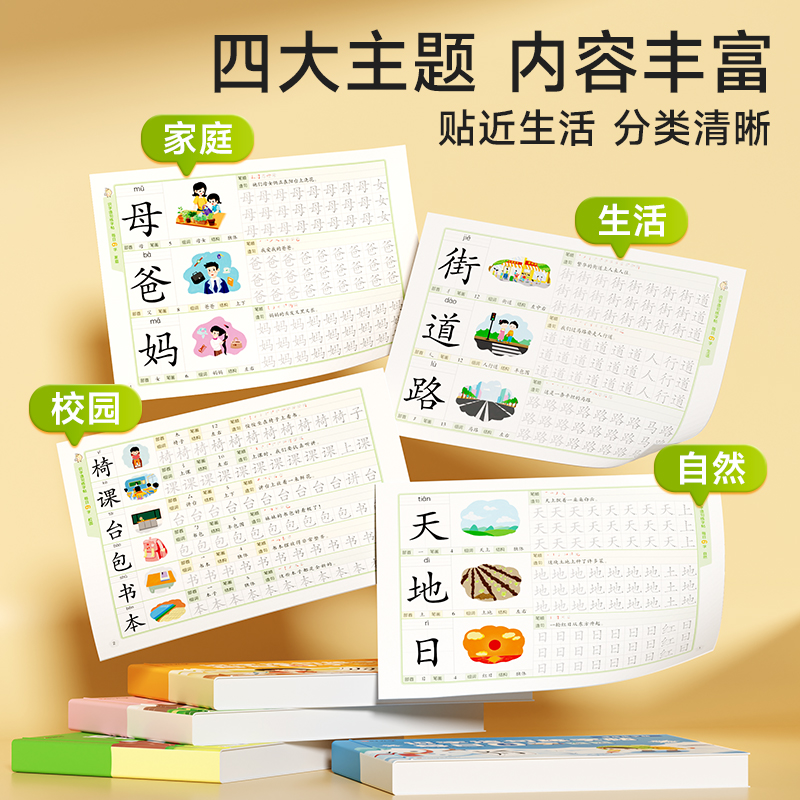 时光学识字造句练字帖每日6字语文拼音幼儿园启蒙3 6岁初学者识字幼小衔接教材汉字练习描红练字本宝宝学写字认字组词造句儿童字帖