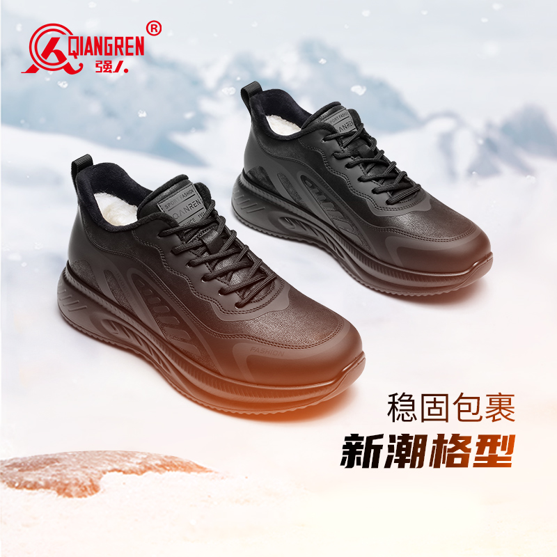 高帮加厚防寒棉靴运动休闲鞋 保暖羊毛鞋 子黑色 男冬季 强人3515棉鞋
