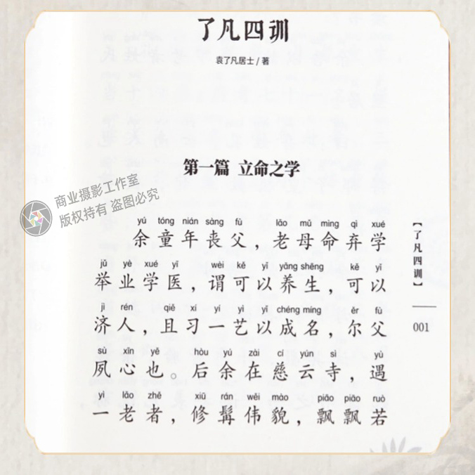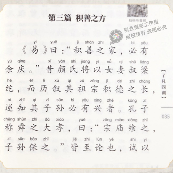 了凡生意经了凡四训诵读本了凡功过格大字注音附音频含太上感应篇文昌帝君阴鸷文俞净意公遇灶神记朱子治家格言 包邮