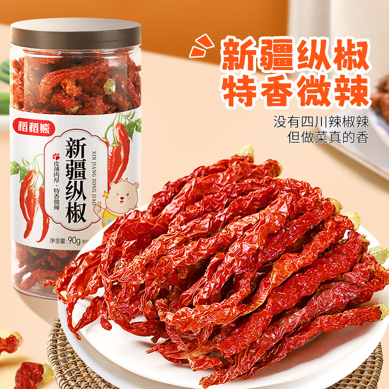 稻稻熊新疆特产辣皮子线椒纵椒辣椒段四川干辣椒灯笼椒大盘鸡调料