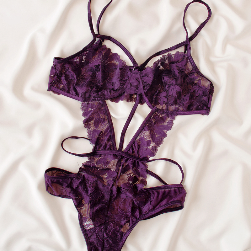 「腰姬美人」纯欲御姐风紫色蕾丝聚拢无钢圈法式 吊带连体内衣套装