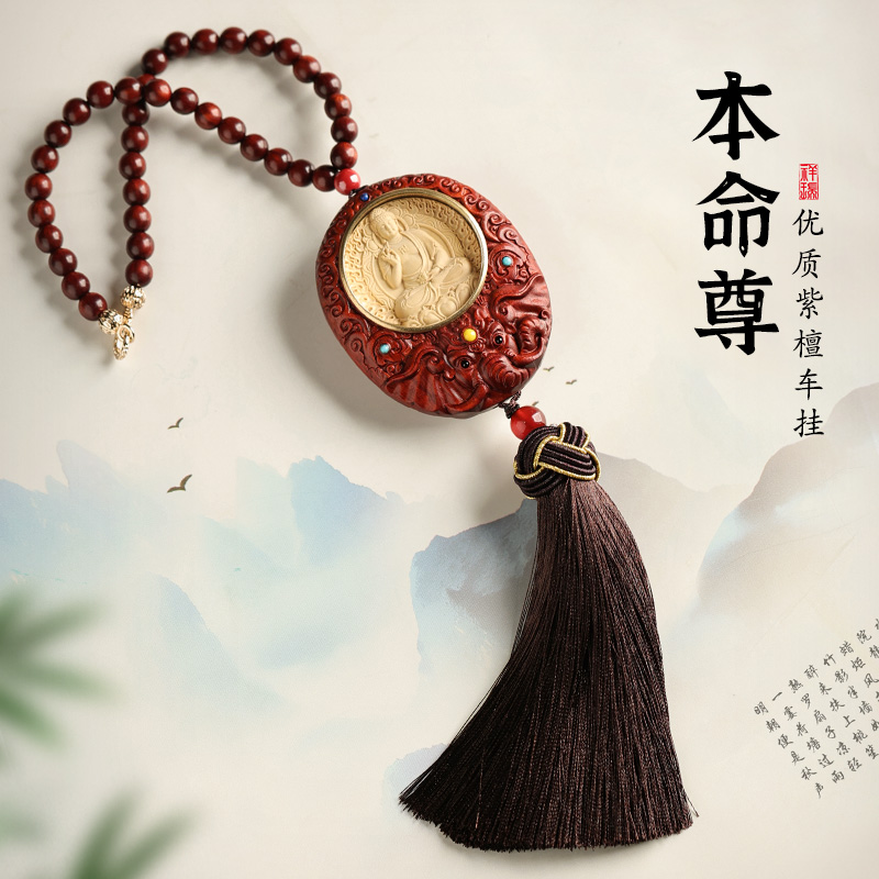 紫檀汽车挂饰本命年生肖属蛇2025新款 木质礼物车载车内后视镜挂件