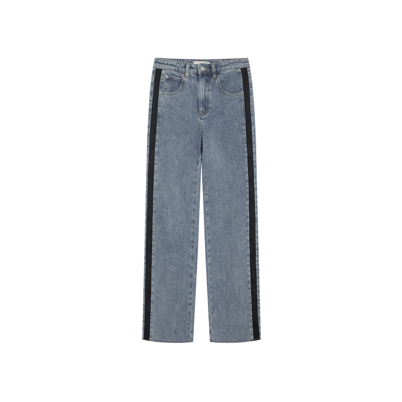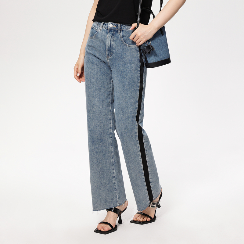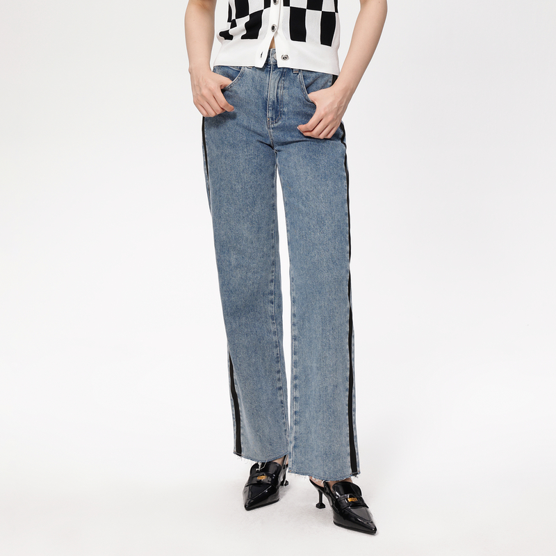 女 女显瘦直筒宽松长裤 CLIMAX VISION怀旧水洗分割拼接弯刀牛仔裤