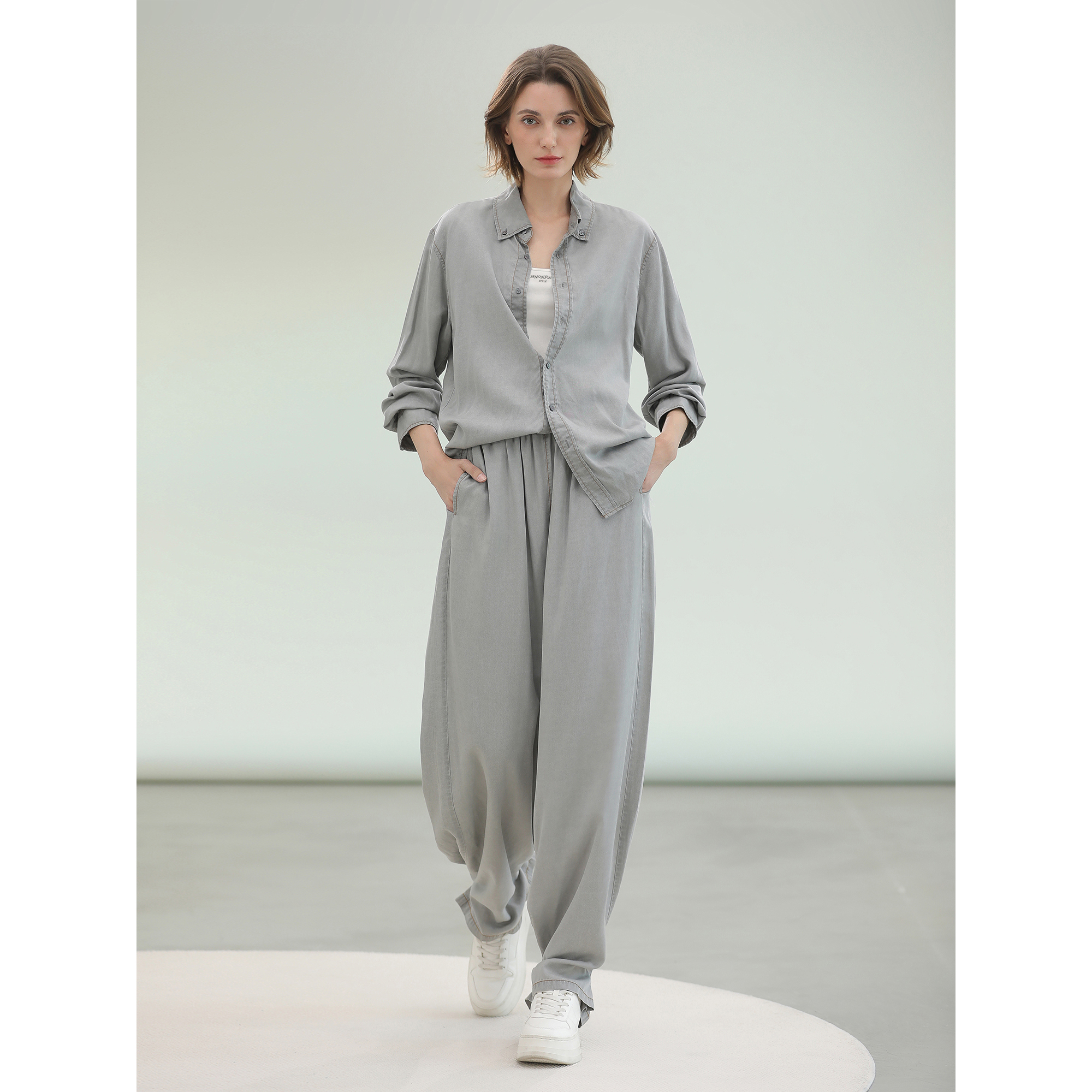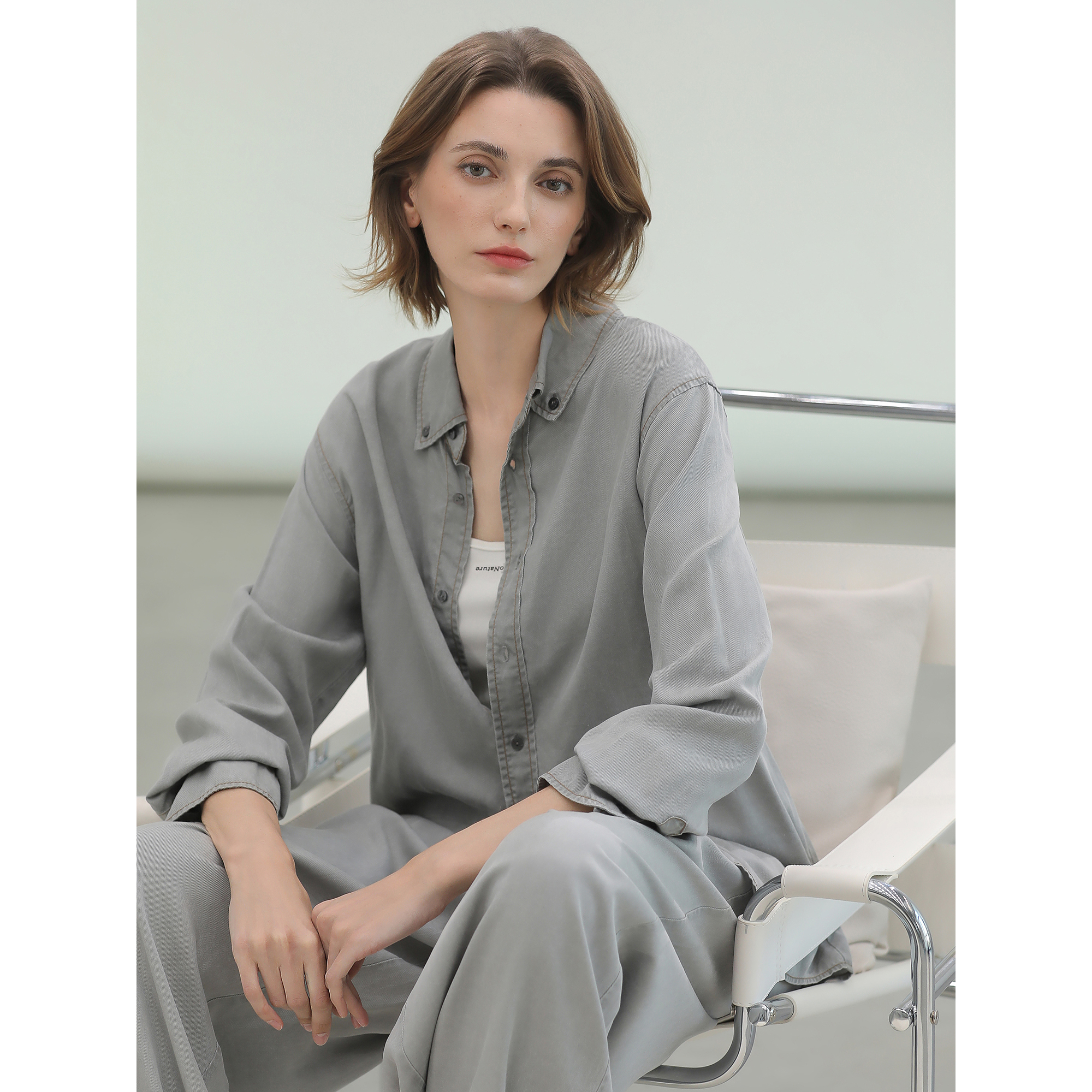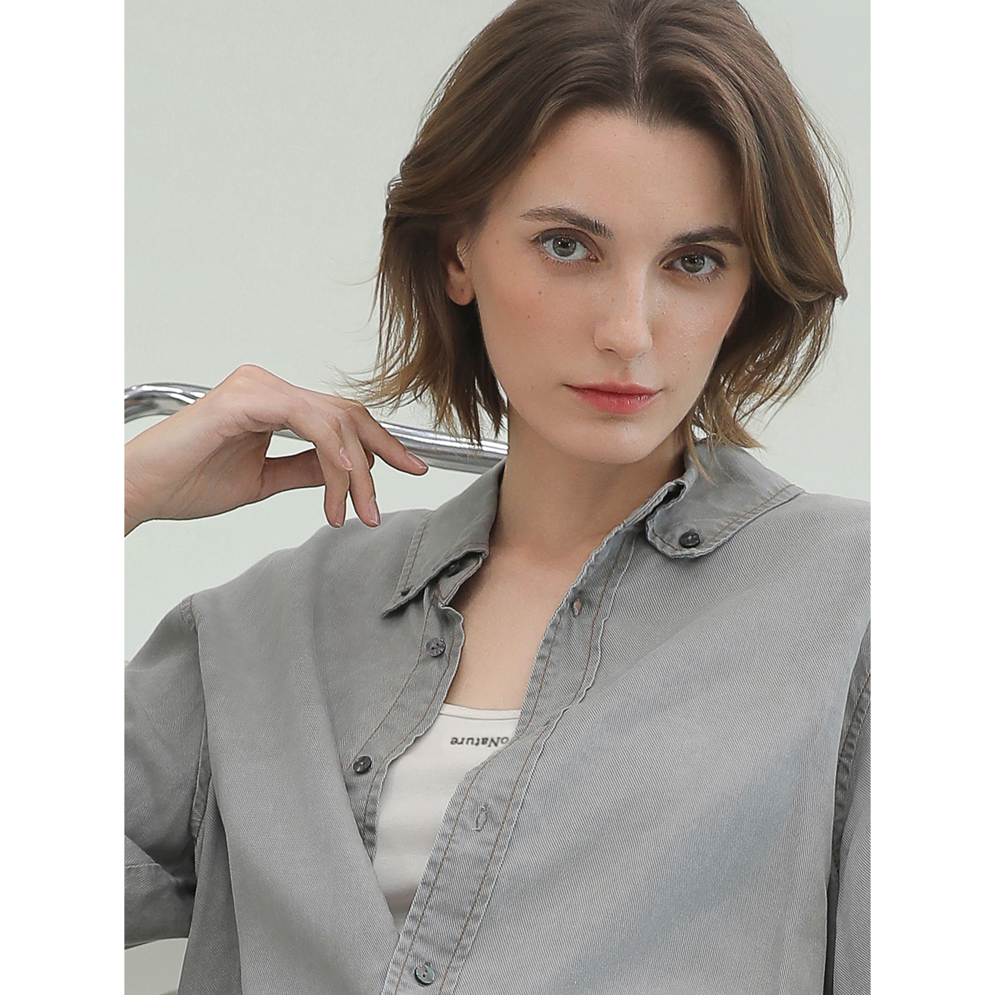 女秋浅色休闲衬衣DN0051 复古水洗牛仔衬衫 COCOBELLA 100%莱赛尔