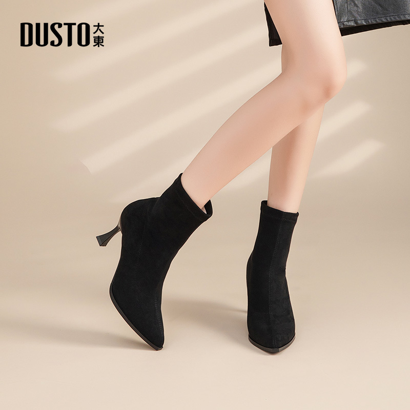 时尚 新款 优雅酒杯跟套脚尖头高跟纯色D1004 2025冬季 大东袜靴女鞋