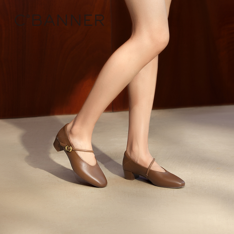女 羊皮芭蕾玛丽珍单鞋 董洁董璇小酒窝同款 真美诗摩卡慕斯25秋新款
