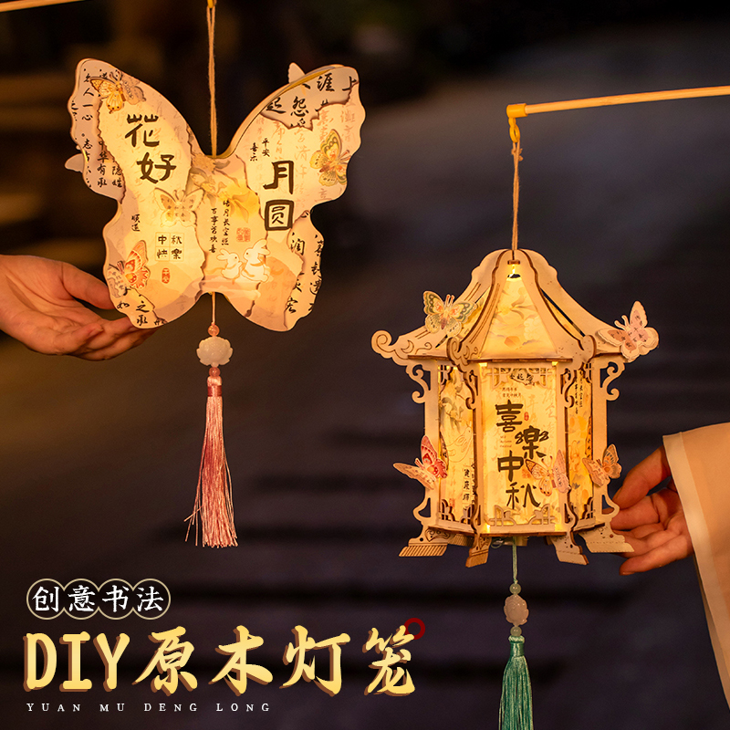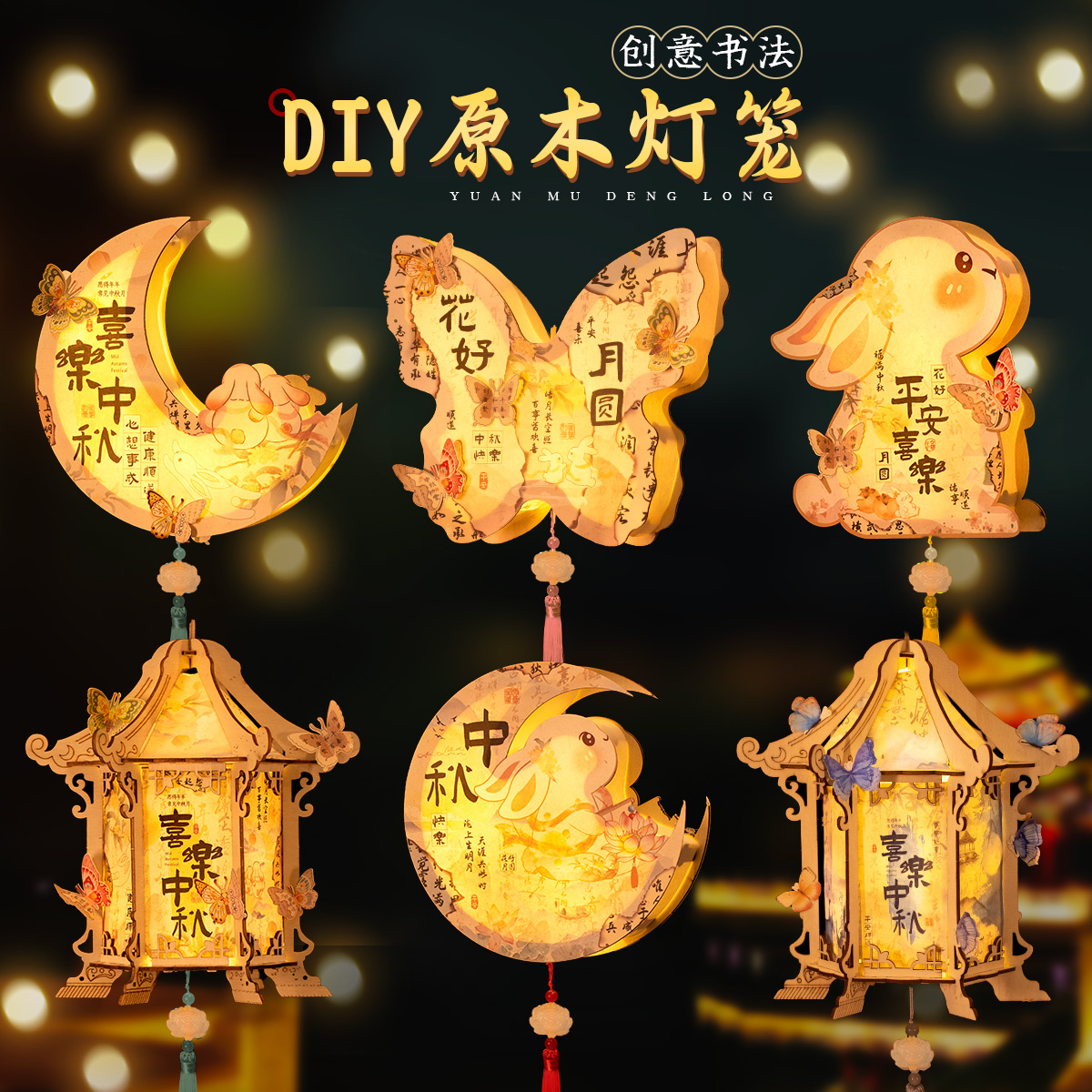 中秋节灯笼2025新款 儿童手提发光花灯手工diy材料包十五古风宫灯