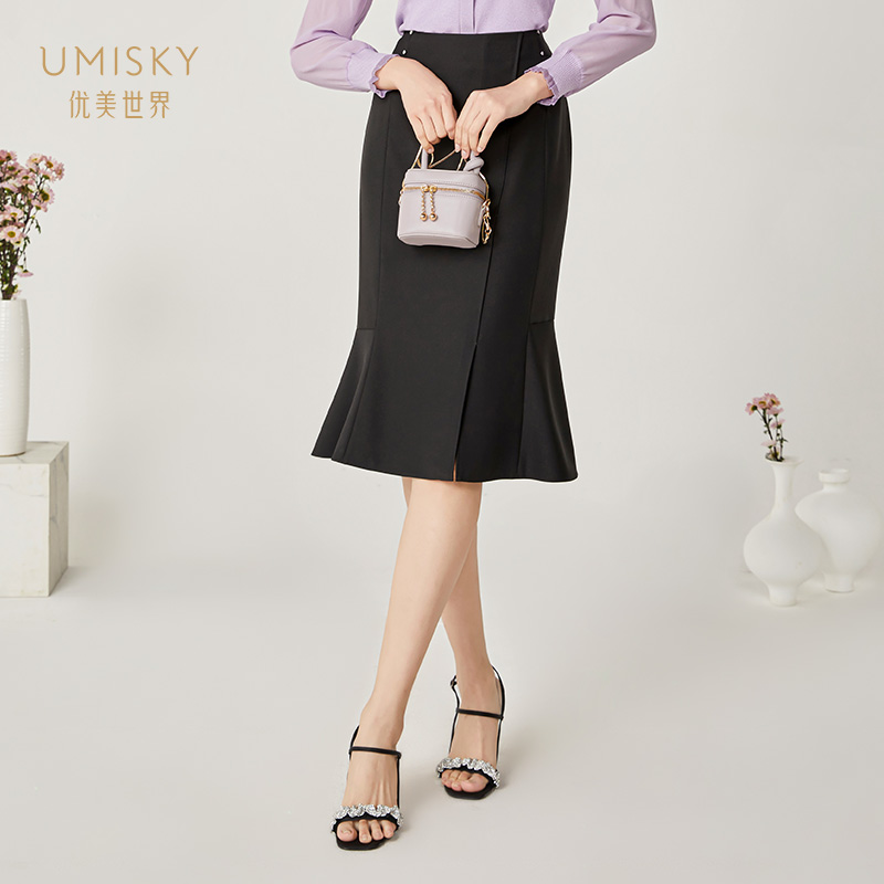通勤高腰包臀鱼尾半身裙SI3H1008 时尚 清仓 umisky优美世界女装