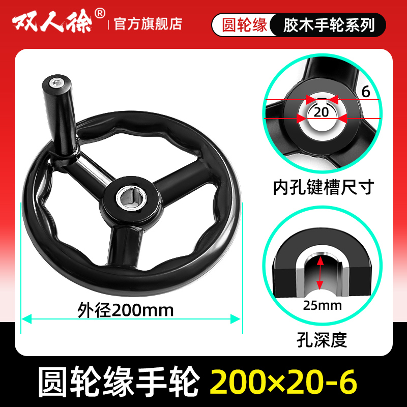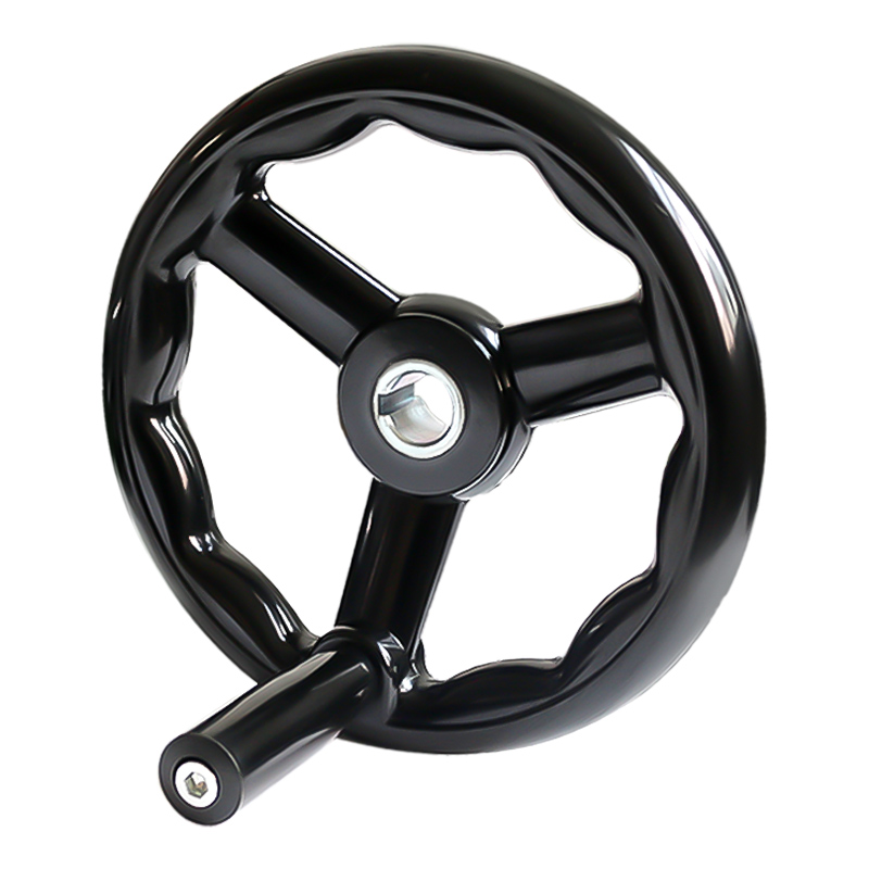 100加厚铝合金手轮圆形可折叠手柄双幅条转动胶木轮机床125160200