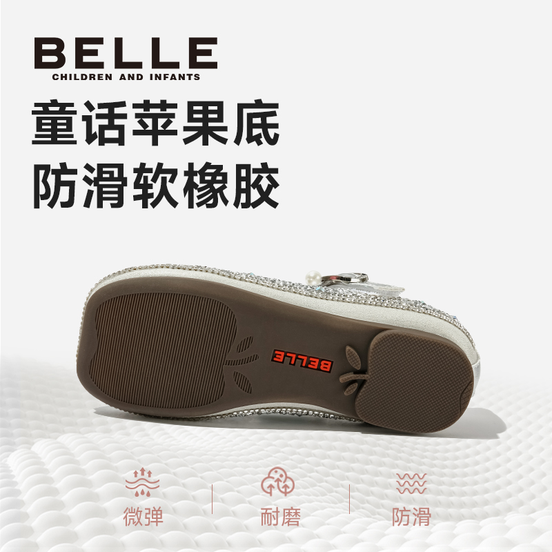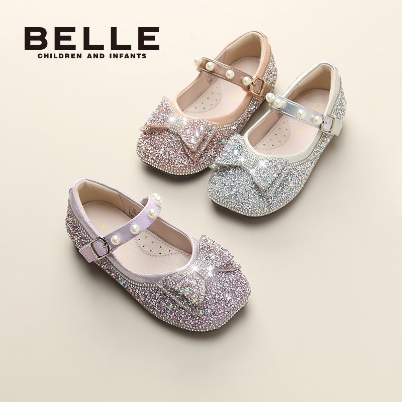女童水晶公主鞋 小皮鞋 2025新款 小女孩爱莎水钻软底鞋 秋季 百丽童鞋