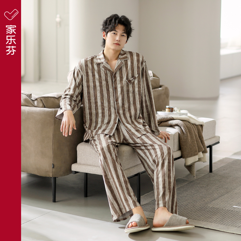家居服男复古风老钱风条纹套装 家乐芬睡衣男士 纯棉长袖 秋季 春秋款