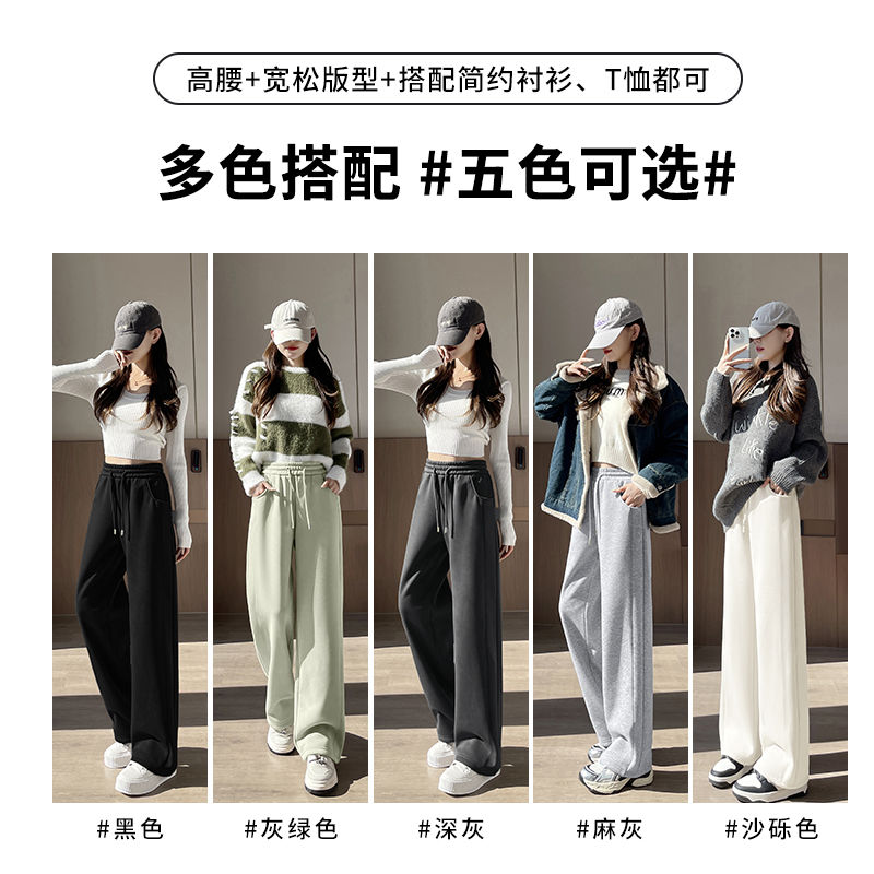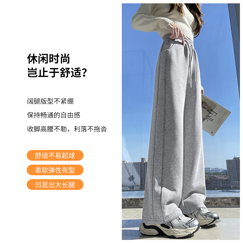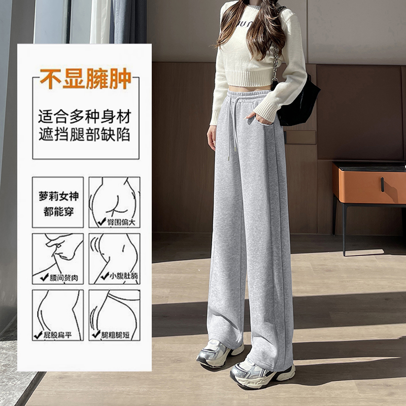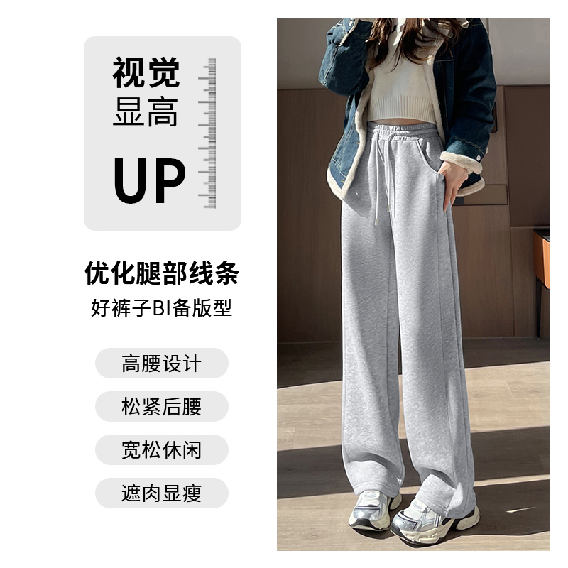 运动裤 KHV真维斯灰色加绒阔腿裤 直筒香蕉裤 休闲卫裤 子 女春秋冬季