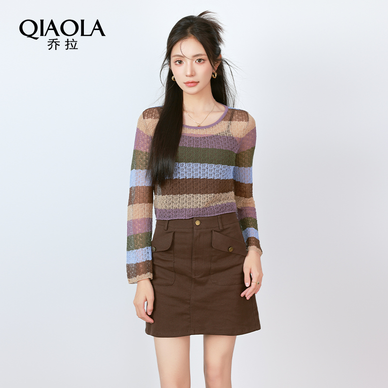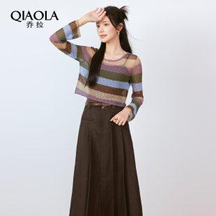 上衣女2025年气质背心三件套 早秋慵懒感条纹衬衫 乔拉 茶胭紫雾