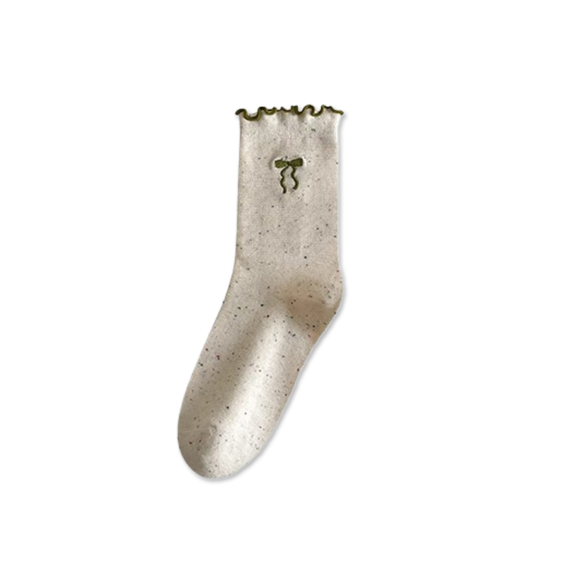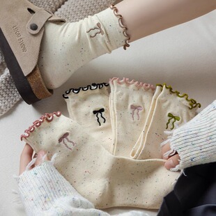 蝴蝶结花边袜子女中筒袜春夏薄款 纯棉日系ins潮女生无骨堆堆袜女