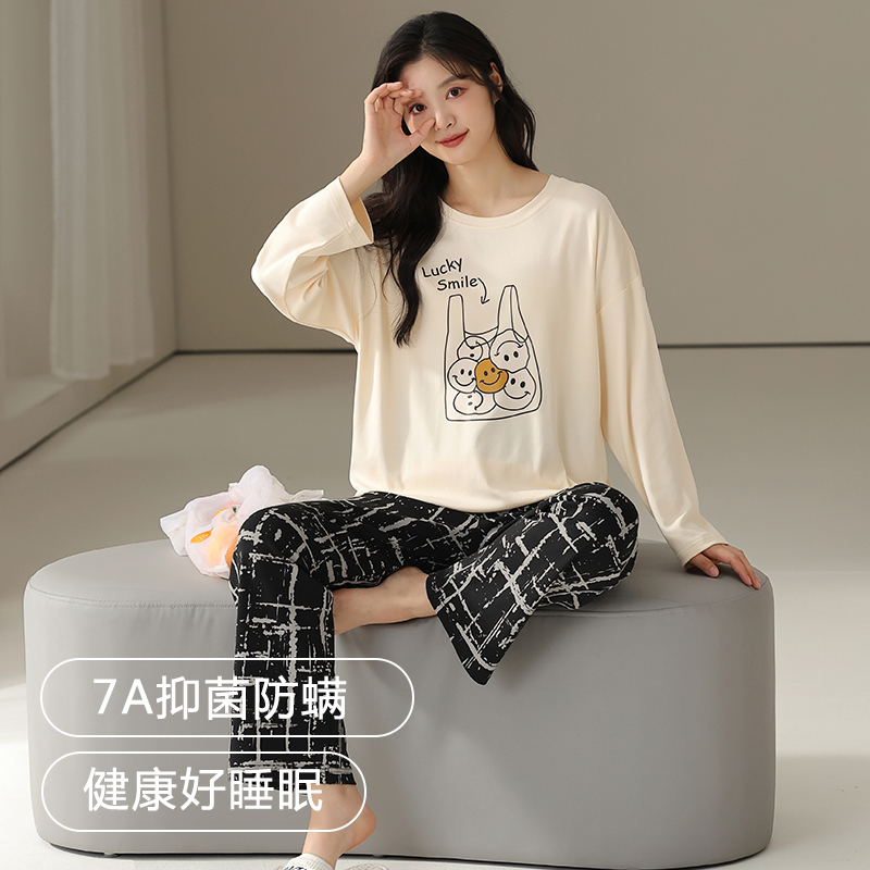 男女士家居服套装 可人儿春秋季 情侣柔软棉睡衣女休闲圆领套头长袖