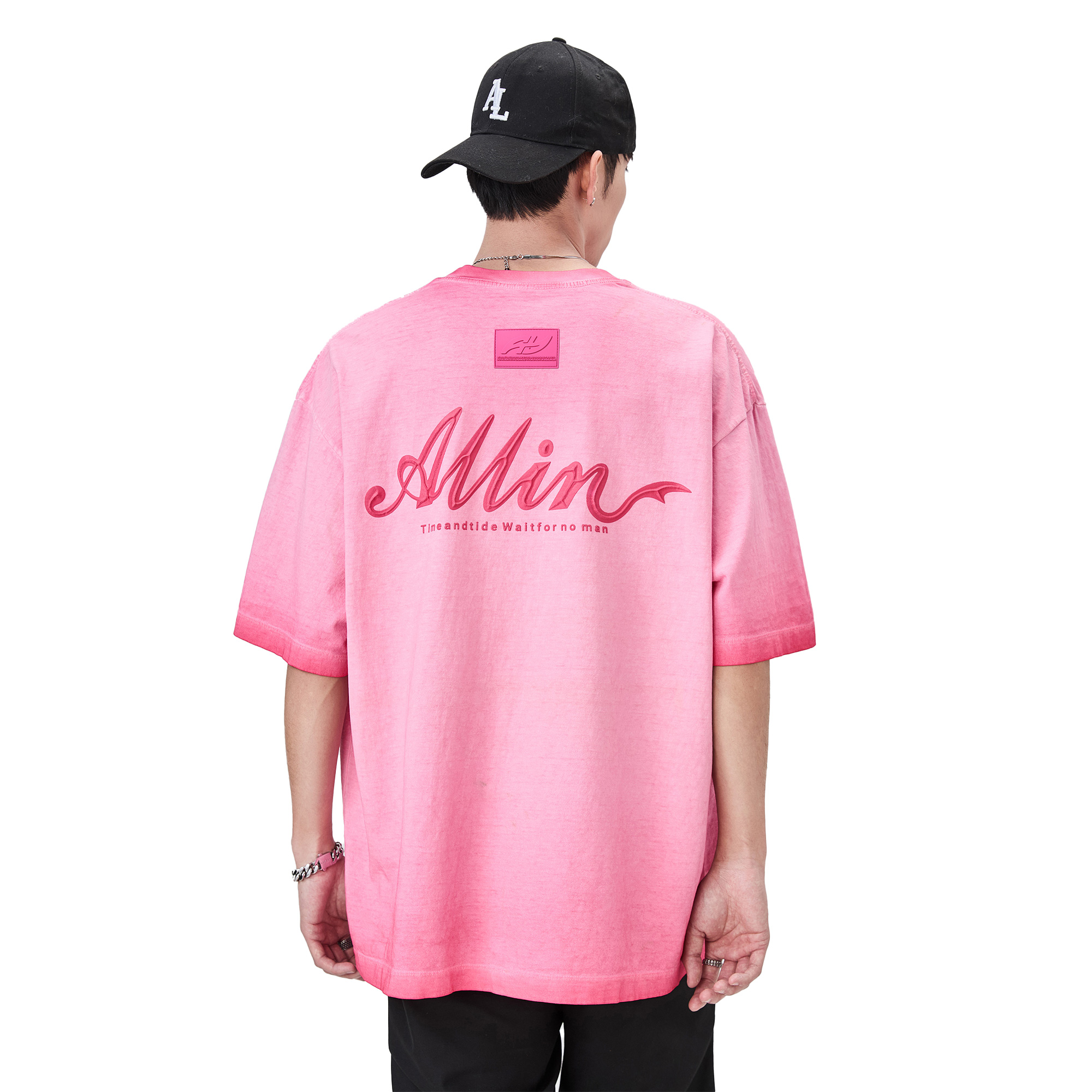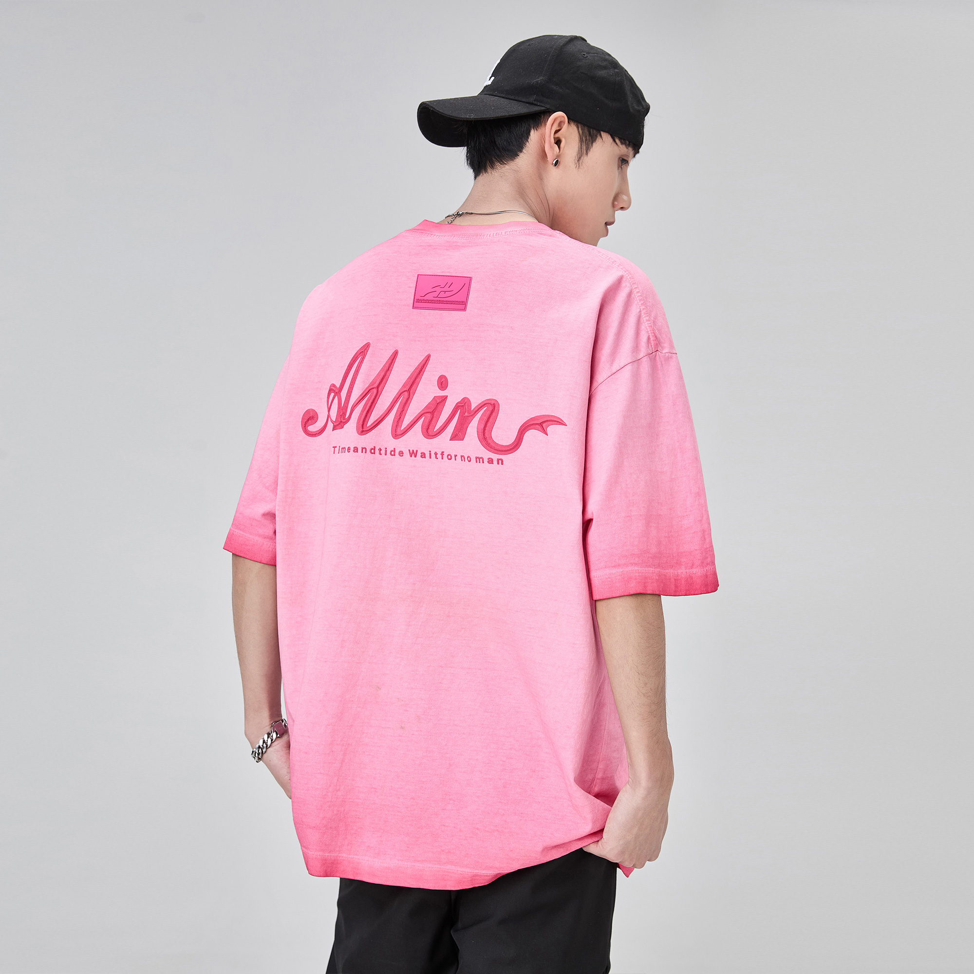 纯棉字母印花半袖 t恤男夏季 宽松圆领情侣上衣 重磅渐变短袖 ALLIN