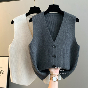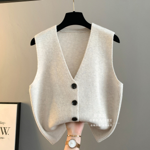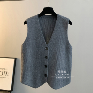 马甲开衫 绿色甜美双排扣针织毛衣连衣裙女秋冬新款 氛围感穿搭无袖