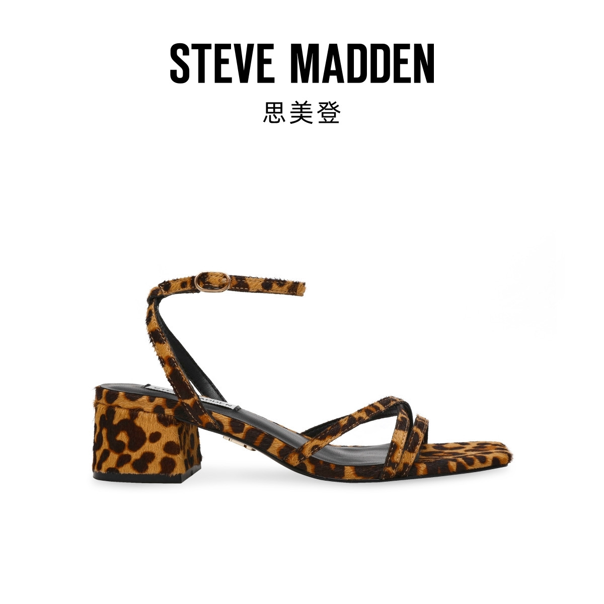 Steve Madden思美登GABBY方头气质交叉带豹纹粗跟凉鞋