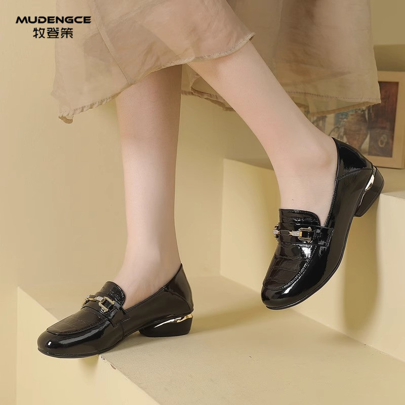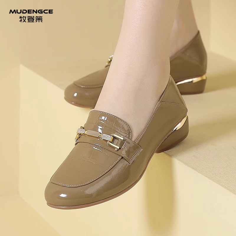 低跟一脚蹬浅口单鞋 气质减龄休闲小皮鞋 女春夏新款 软底皮面乐福鞋