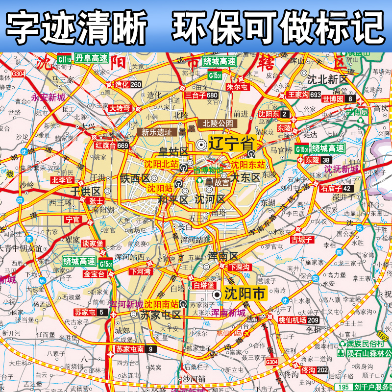 沈阳市地图 交通旅游City城市地图 大比例尺城区图 发货快 旅游出行指南 86X60cm 2025年新版 折叠方便携带 环保材质可标记
