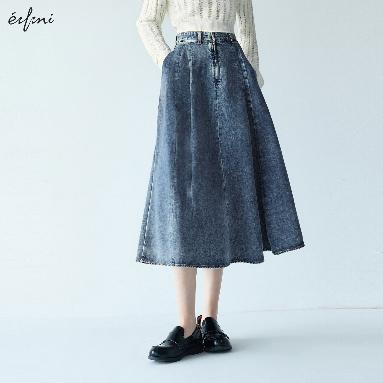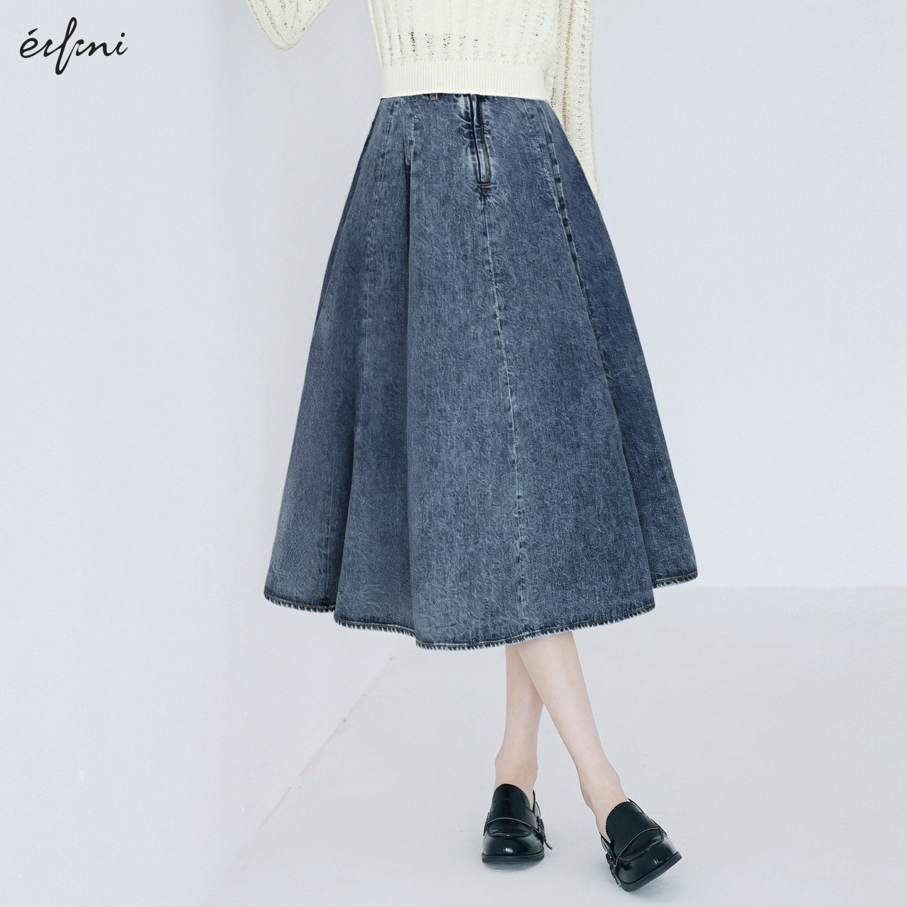 TieForHer Naya蓝色A字半身裙女显瘦通勤过膝长裙复古优雅千金风