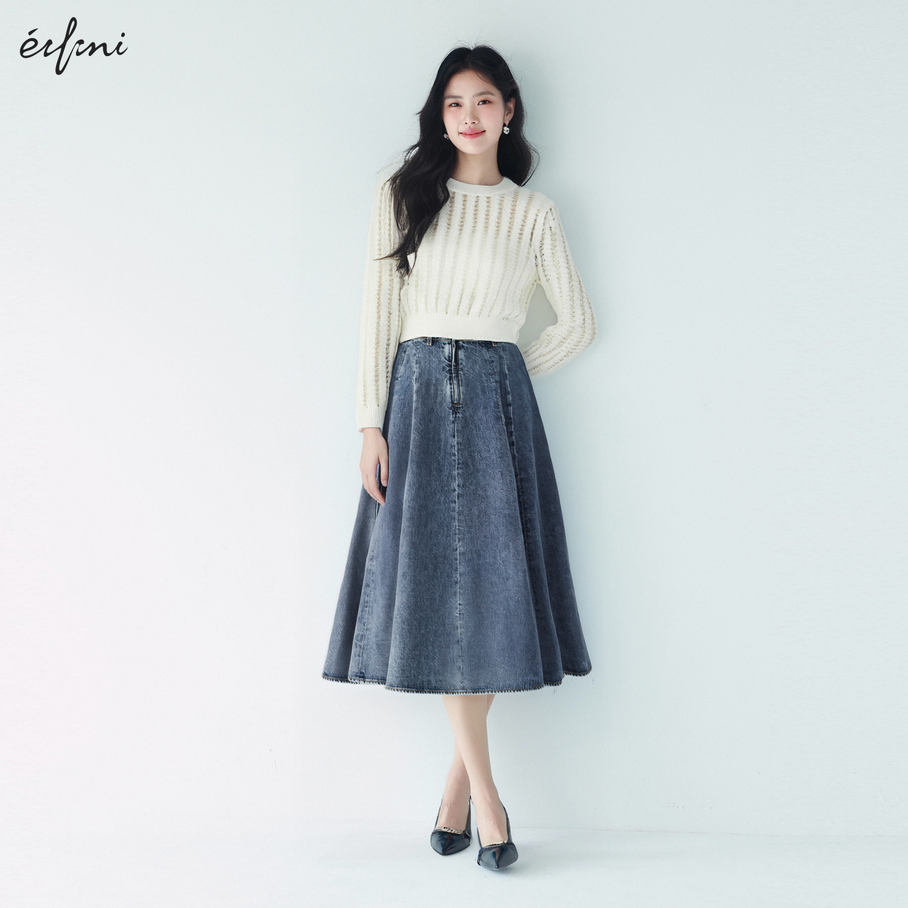 紫涵拼接花苞型半身裙女秋季 高腰显瘦休闲通勤百搭宽松中长裙 新款