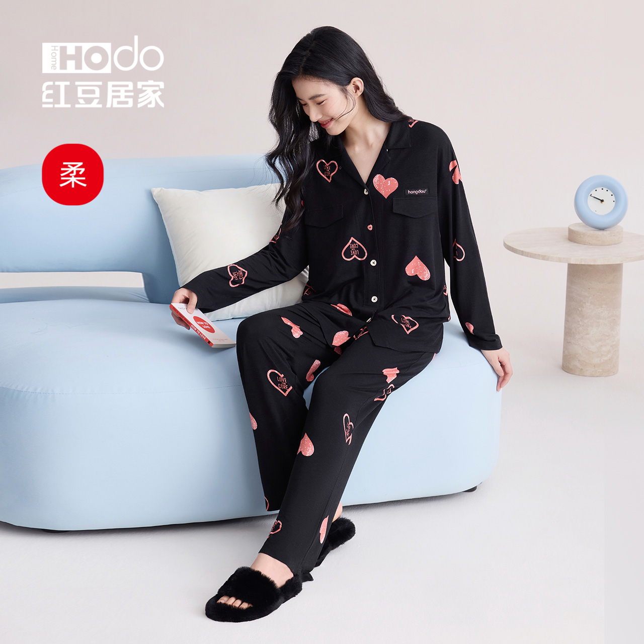 海岛绒可外穿家居服 简约薄款 睡衣女秋冬季 保暖珊瑚绒女士睡衣套装