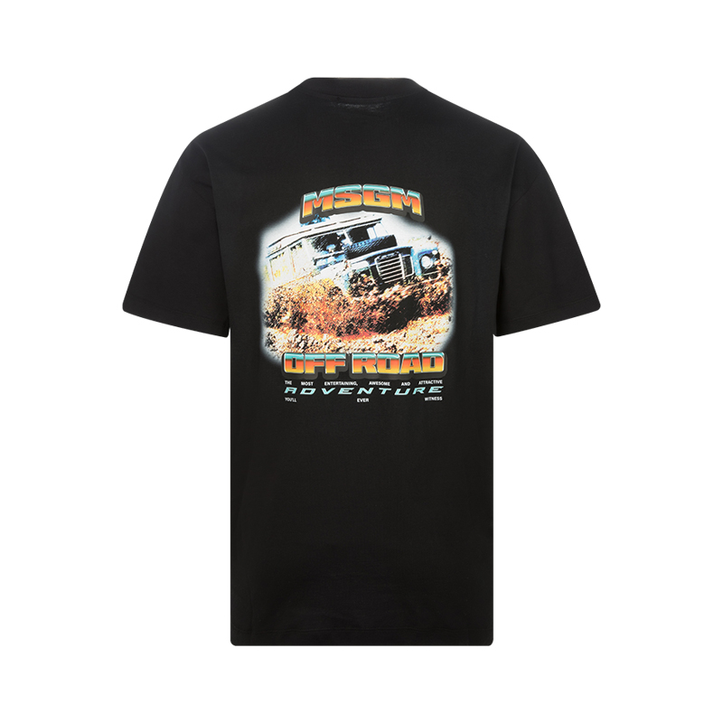 休闲宽松圆领短袖 MSGM春季 复古印花男士 黑色棉质美式 T恤 新款