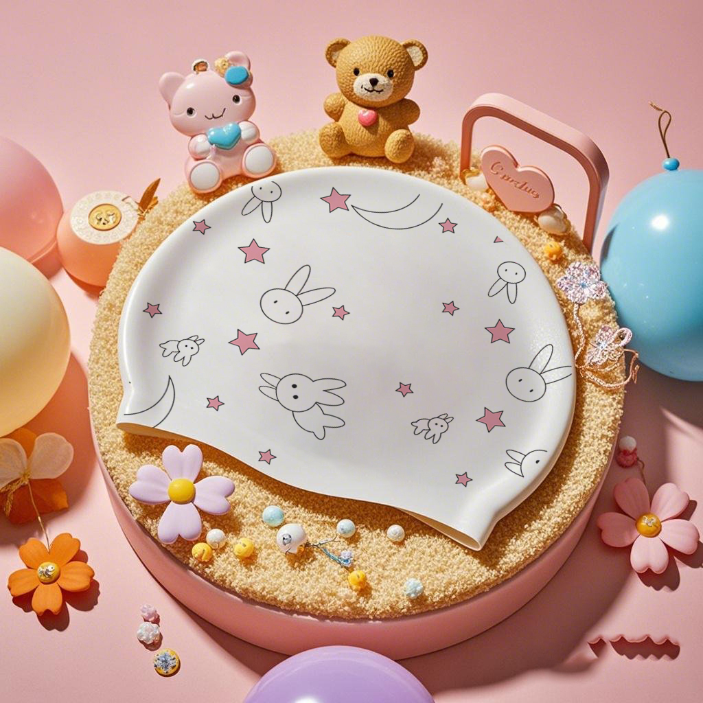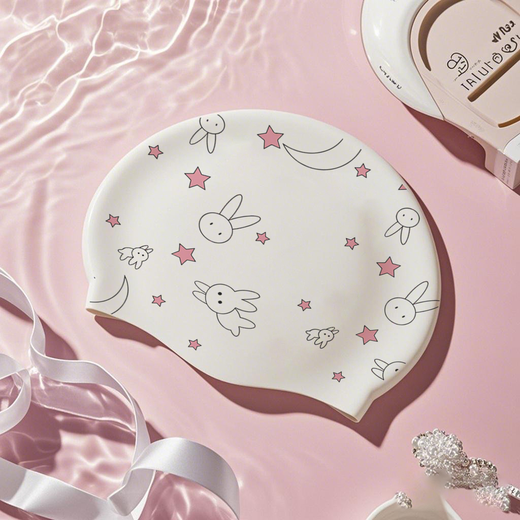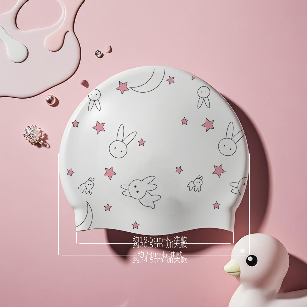 男女通用泳帽大号游泳运动防水不勒头长发防水印花时尚 月亮兔泳帽