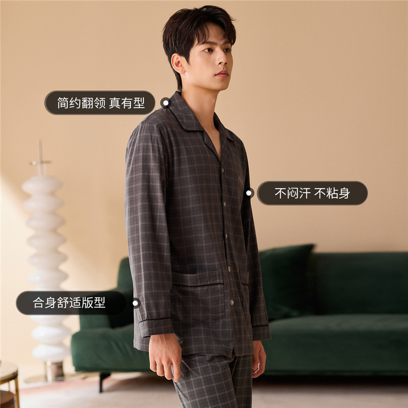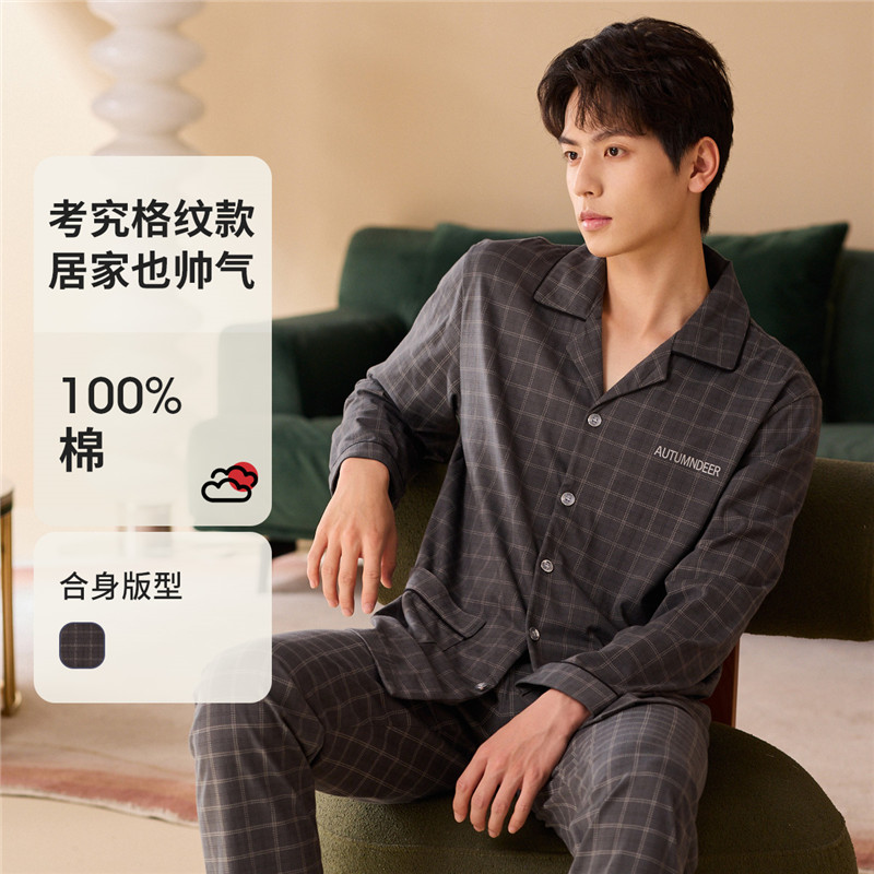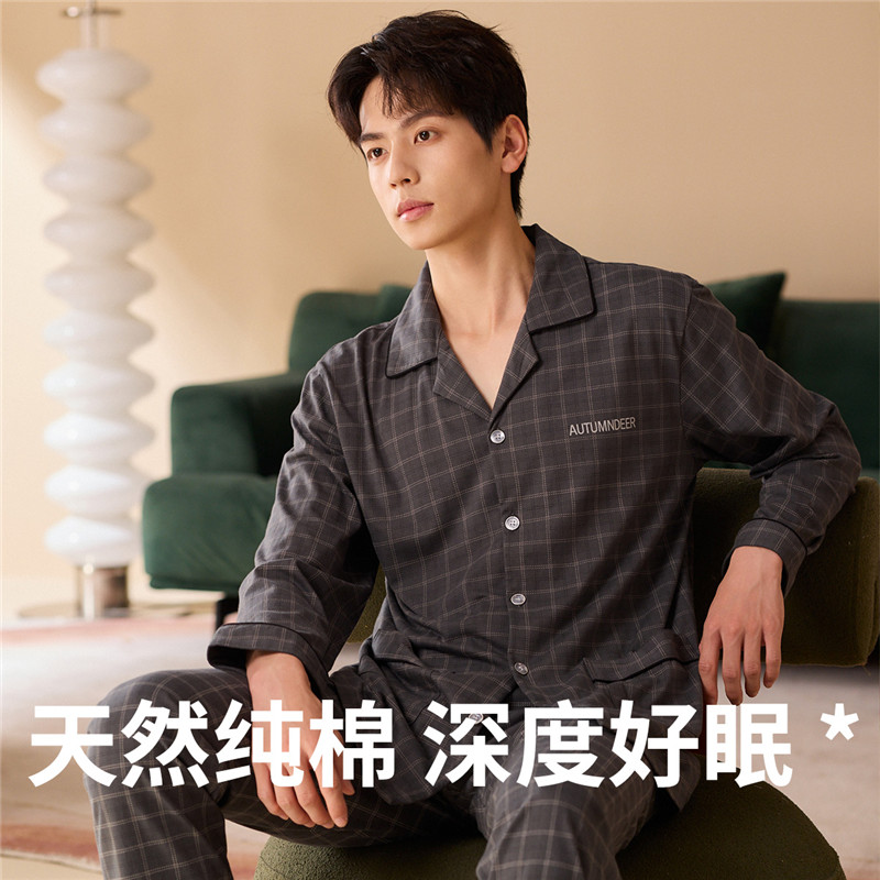 家居服套装 男士 青少年学生男孩大童2025年新款 纯棉长袖 睡衣春秋款