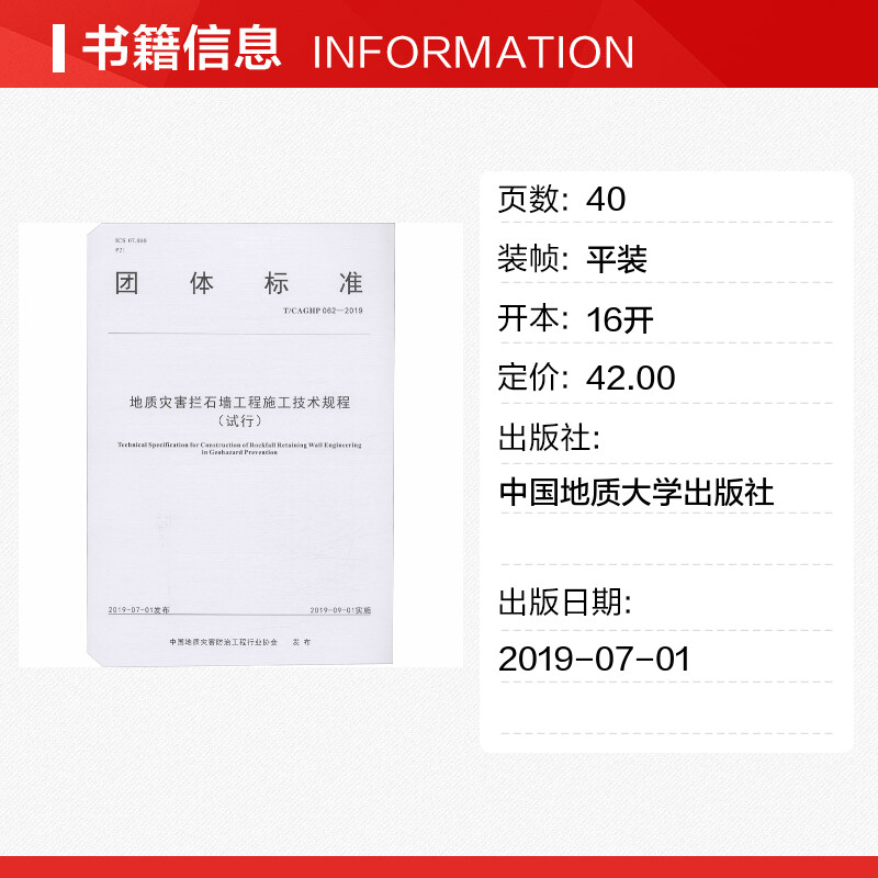 水利 专业科技 CAGHP 中国地质灾害防治工程行业协会 编 2019 062 新 地质灾害拦石墙工程施工技术规程 建筑 试行