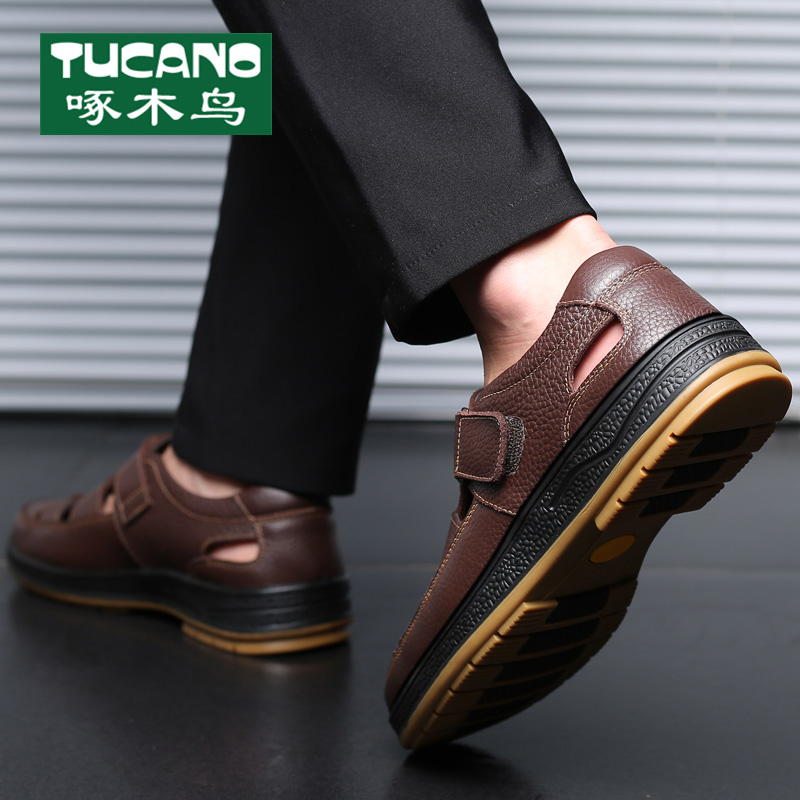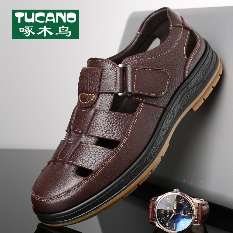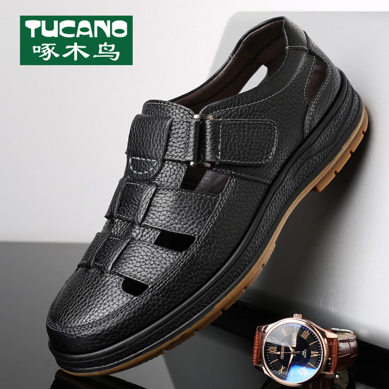 男夏季 真皮厚底爸爸拖鞋 新款 男士 男防滑 牛皮休闲沙滩鞋 红蜻蜓凉鞋