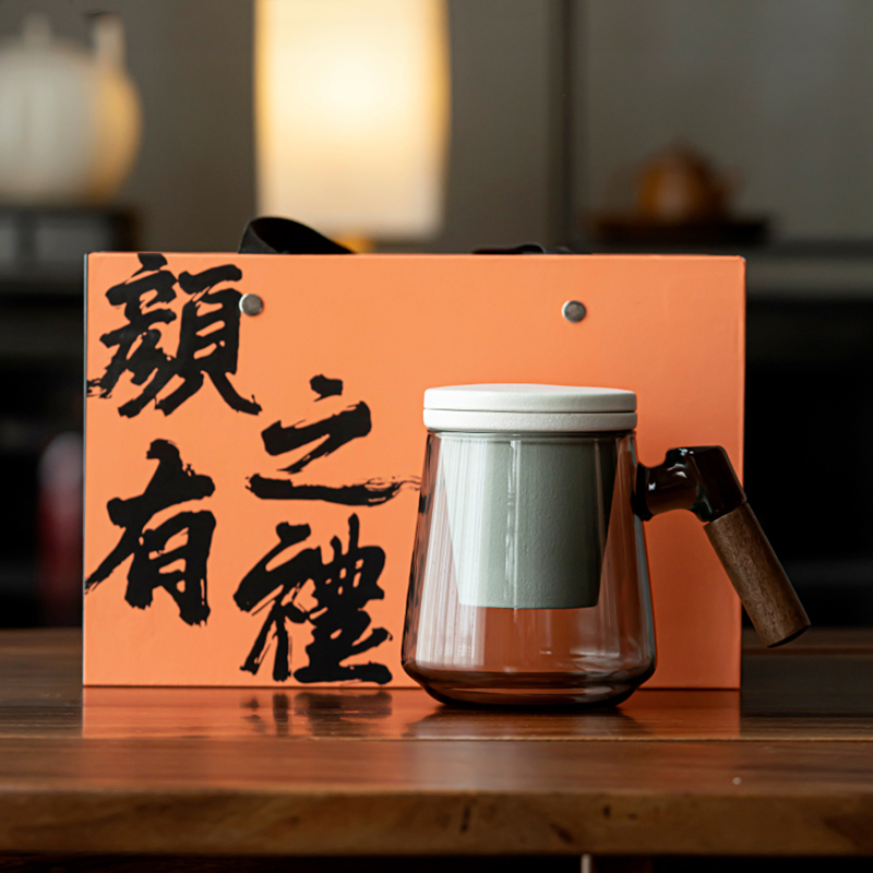 玻璃茶水分离泡茶杯子办公室个人专用喝水杯带盖过滤马克杯礼盒装