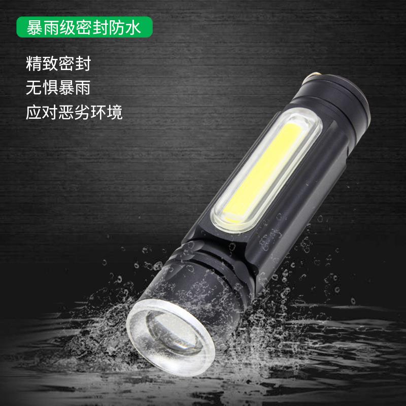 户外强光手电筒可充电超远射超亮带侧灯 LED变焦高续航手电筒