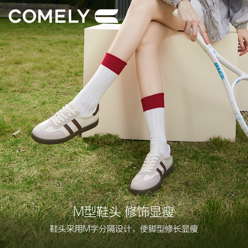 跑步平底休闲鞋 拼色软底阿甘鞋 女2025年春商场新款 康莉银色德训鞋