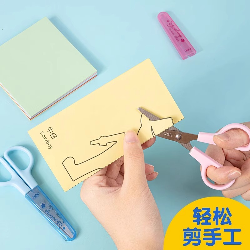 得力儿童手工剪刀安全剪子小学生diy剪纸刀不伤手自带保护套美术美工剪幼儿园专用花边剪圆头塑料剪刀裁剪刀