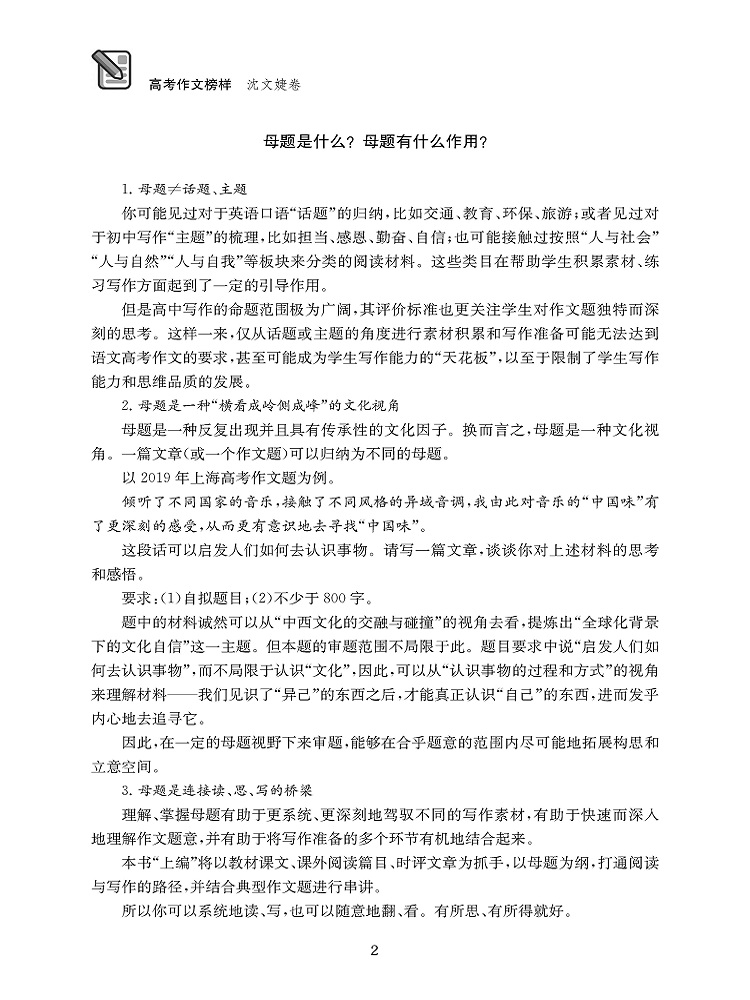 高考作文榜样沈文婕卷 社以母题思辨为纲从审题立意论证文体取材组合逻辑思维体悟高考作文提升写作水平 母题写作上海教育出版