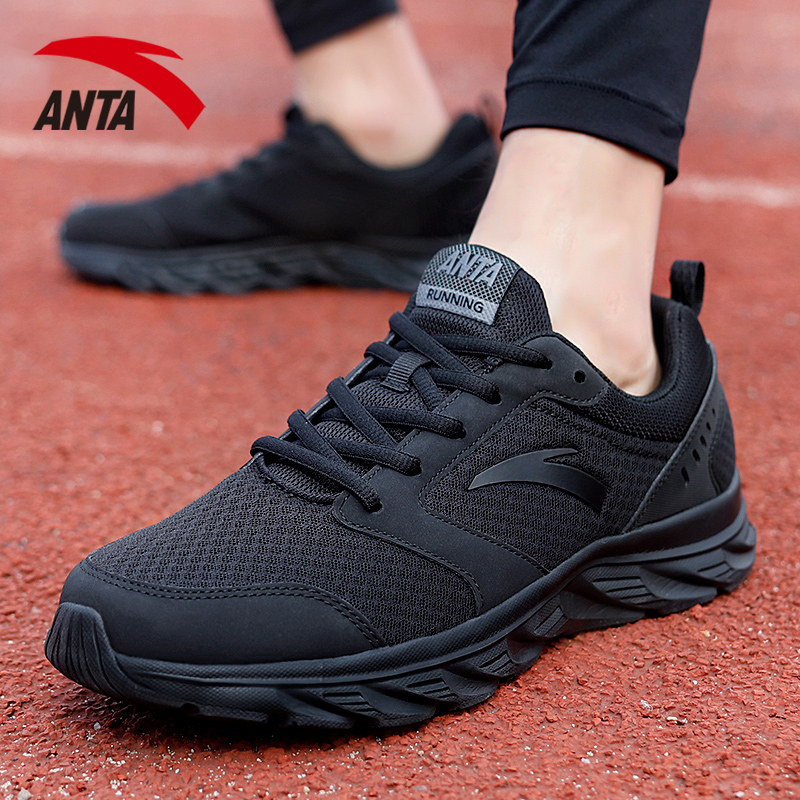 黑色休闲运动鞋 安踏男鞋 官方旗舰正品 皮面防水跑步鞋 2025秋冬新款