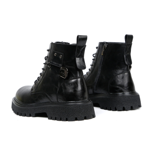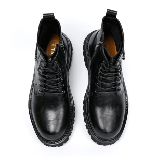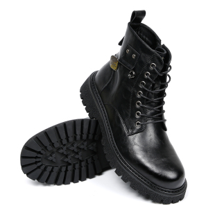 黑色增高靴子女时尚 新款 休闲皮面短靴 2025秋季 环球厚底马丁靴女款