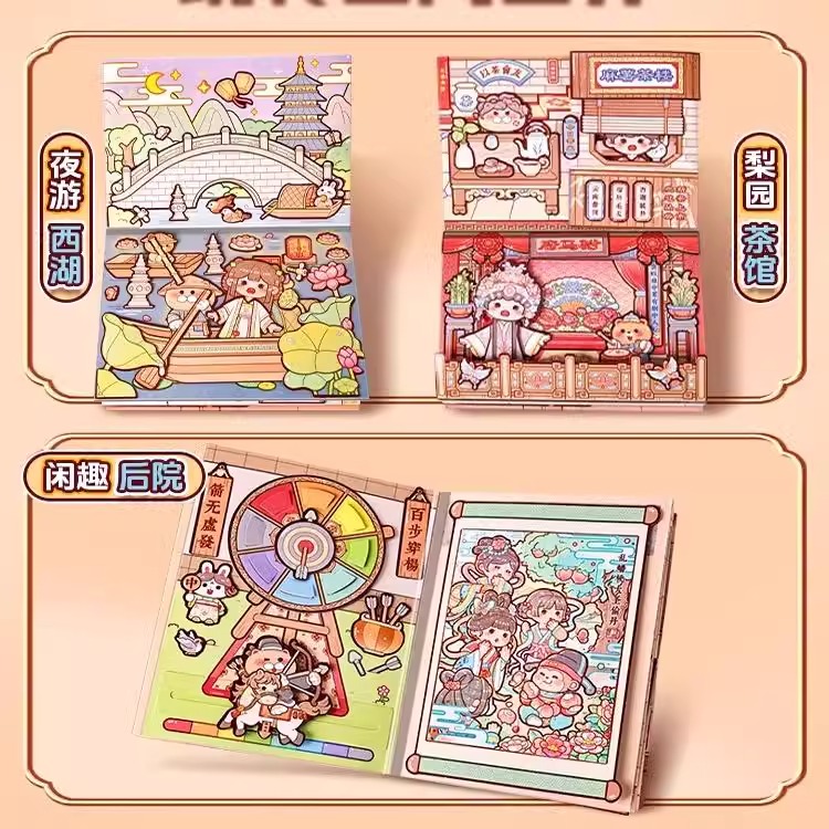小麻薯安静书免裁剪磁吸贴画 女孩 江南游记磁力古风全套豪华新款