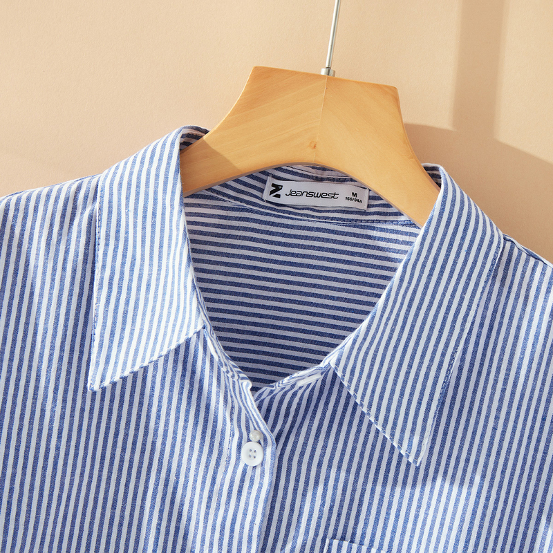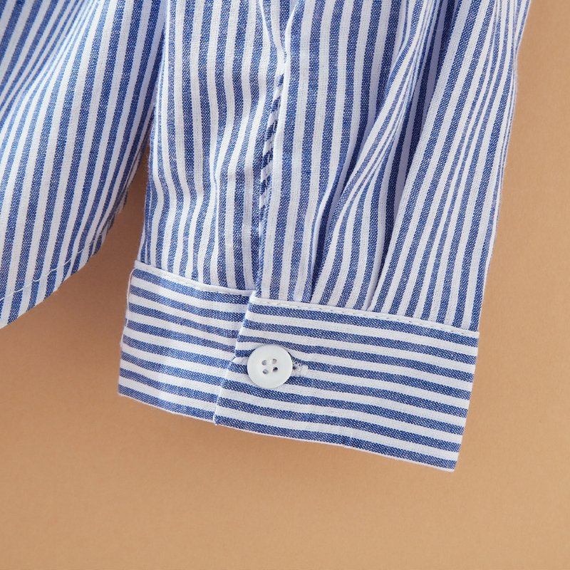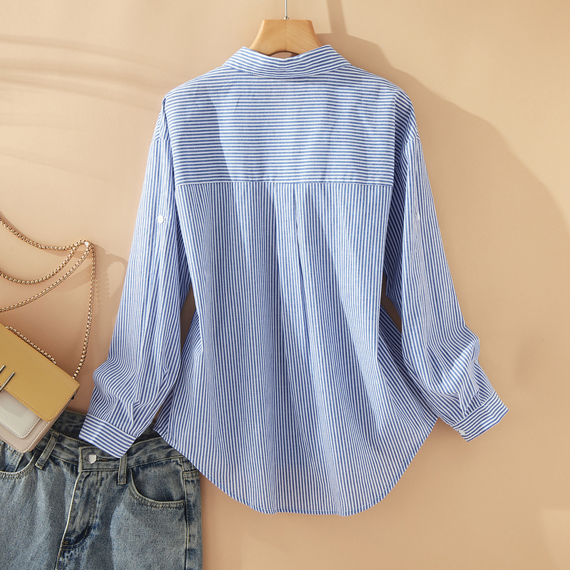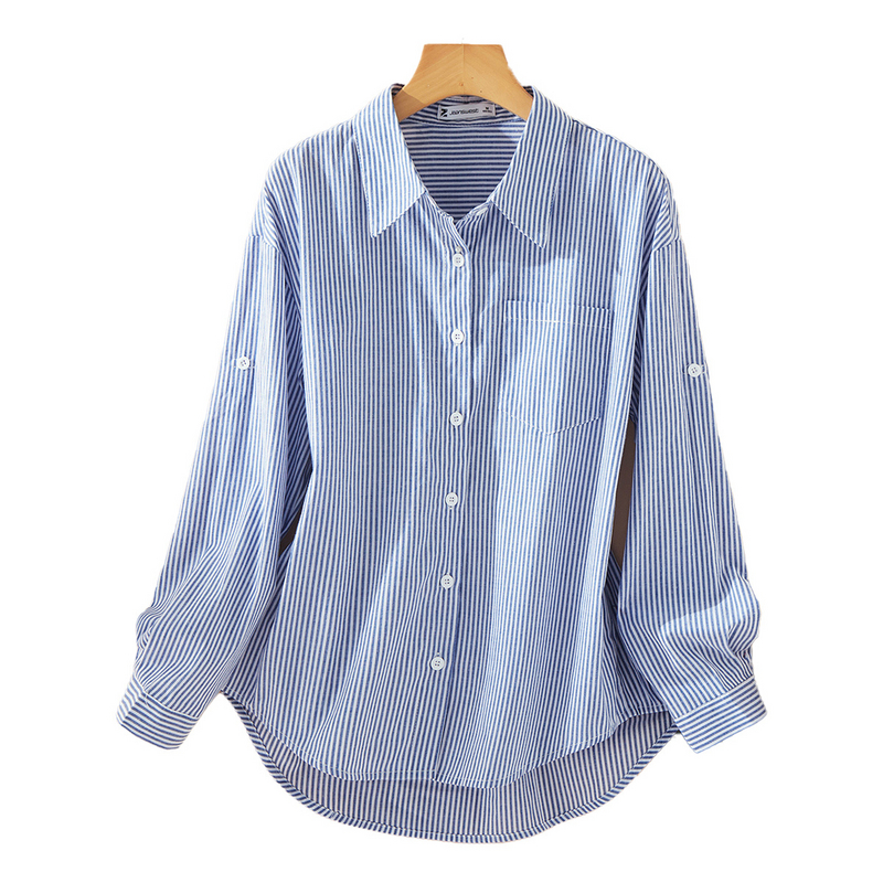 2025春季 翻领宽松长袖 新款 经典 上衣 蓝色条纹女衬衫 YD真维斯女装