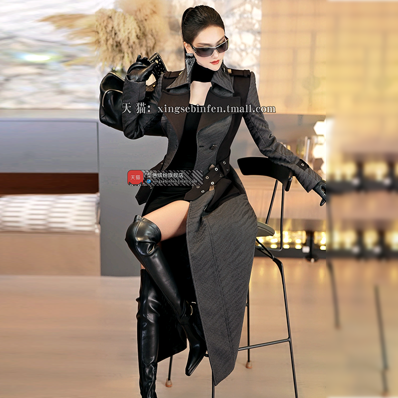 气质中长款 外套新款 棉服 撞色拼接仿皮夹棉双排扣修身 冬季