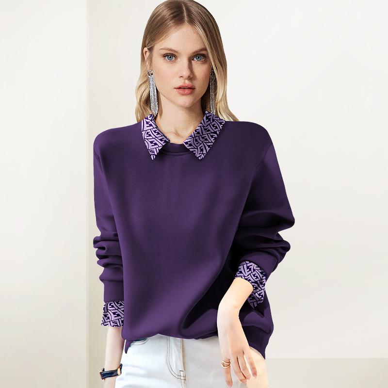 宽松百搭遮肉显瘦叠穿上衣潮 假两件时尚 翻领卫衣女2025年秋装 新款