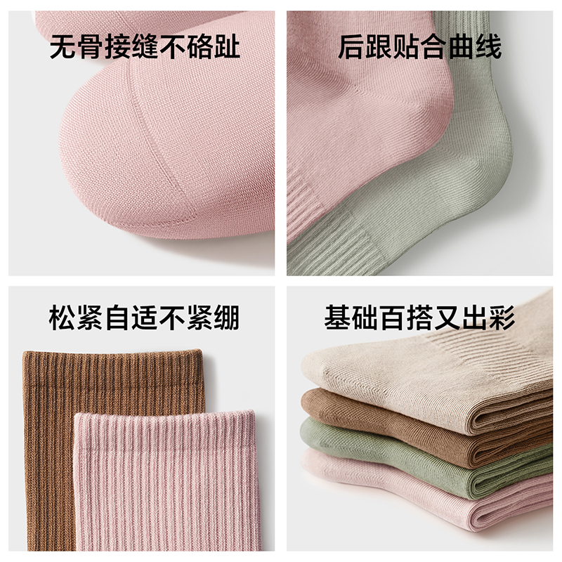 森马女士中筒堆堆袜韩版 学院风长筒棉袜女生吸汗透气抗菌无骨袜子