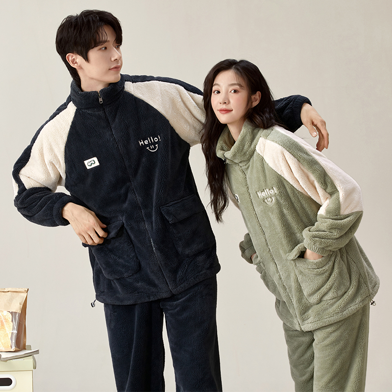 猫人情侣睡衣贵妃绒秋冬新款 加绒加厚保暖蓄热可外穿家居服套装