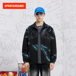 宽松运动外套 情侣装 SprayGround鲨鱼嘴春款 闪电印花夹克男美式